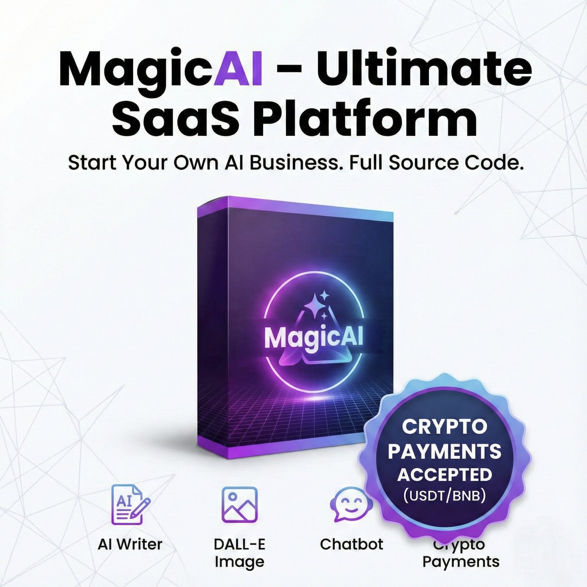MagicAI is the most complete AI "Software as a Service" (SaaS) script on the market. It allows you to build a platform where users can generate text, code, images, and voiceovers using the power of OpenAI (GPT-4) and Stable Diffusion.