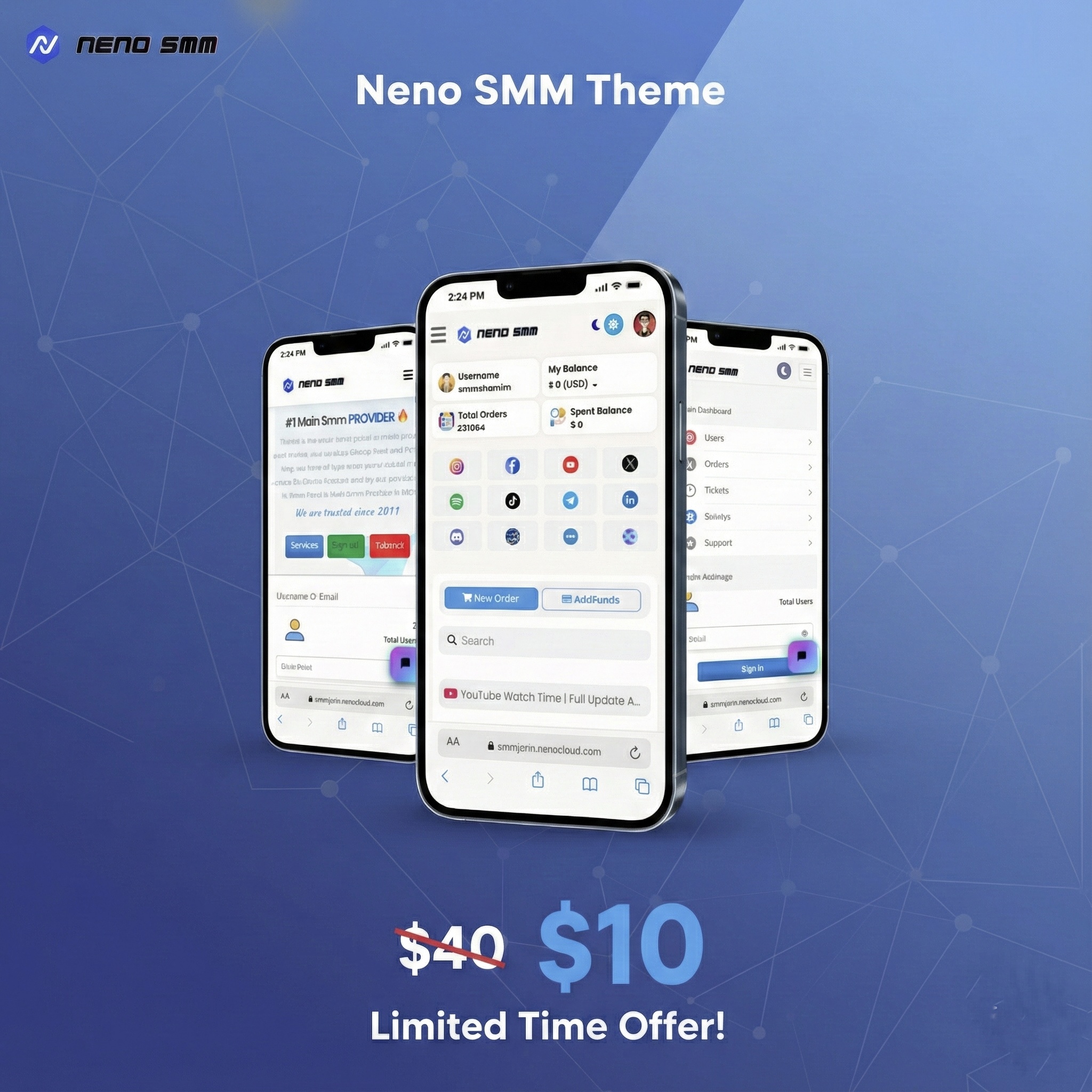 Start your own Social Media Marketing (SMM) reseller business effortlessly with the Neno SMM Theme. This isn't just a template; it's a powerful, fully functional website script designed for speed, security, and ease of use.